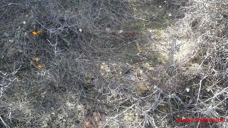 A menedékháznál nagy élet volt. Theologosból fiatalok több napra kibérelték a házikót és fent laktak. Már épp hazakészülődtek odaértünkre. Panagia falujából is vagy 10 motoros verte fel a természet madárcsicsergéses csendjét. A családos férjek szombati kirándulásra jöttek fel. A kecskeugrató motorjukkal a legnehezebb szakaszt választották a biztos kaland élményéhez.