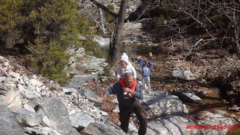 Március első napjaiban kihasználva a hosszan tartó, inkább áprilisra jellemző napfényes meleg időt, családi kirándulást tettünk az Ypsárió menedékházához. Első nagy megállónkat a Jenna tónál tartottuk. Csalódottan láttuk, hogy szinte nincs vize a tónak, valamint eléggé feldúlt a környezete. Lemerészkedve a mesterségesen kiképzett tó völgyébe azt fedeztük fel, hogy a régen deltaszerűen szétágazó vízerek egy mederbe lettek terelve. Valamint a patakok amerre futottak a széles szurdokvölgyben, mindenhol kicsiny platánfák voltak. Ezt a friss erdőséget teljesen feldózerolták, egyelőre még a fatörzsek a földbe temetve hagyva. A sáros süppedő terepen előre mentünk a tavakig. Ott béke uralkodott. A kecskék tőlünk megijedve a hegy felé vetették magukat. Távoli mekegésüket a mindenhonnan hangosan csobogó vízesés hangja elfedte. A tavak száma a háromról négyre nőtt. Mély vizük, tisztán, csábítóan marasztalásra hívott bennünket, hogy gyönyörködjünk az egymást követő négy tó vizének csobogó dalában. Hogyan távoztunk onnan? Ezt másoknak nem ajánlom. Én magam is mérhetetlenül felháborodva követtem a csapatunk férfi tagjait, kik lusták voltak a nehéz terepen visszagyalogolni. A legbelső tótól a hirtelen meredeken magasló útra azonnal felkaptattak. Ez nagyon veszélyes, hisz a talaj nem kötött , a kiálló kisebb kövek alábukhatnak. Szerencsére egyikünknek sem lett baja. Ez a módi eszébe ne jusson másnak!