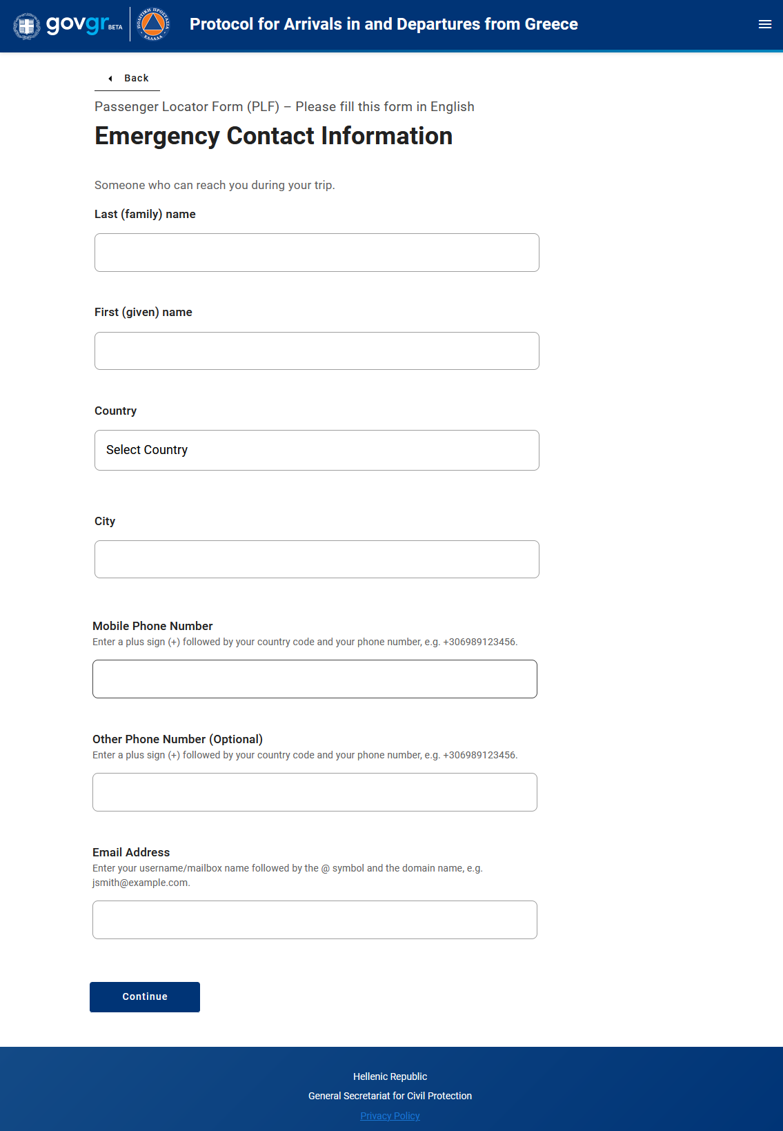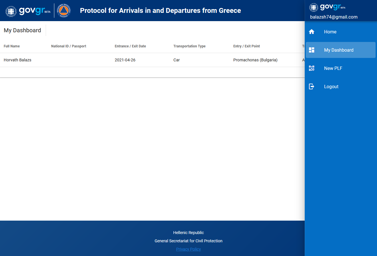 A görög kormány Közegészségügyi Hatóságának kiadott rendelete szerint a Görögországba utazóknak 24 órával a várható érkezés előtt regisztrálniuk kell egy angol nyelvű online adatlap kitöltésével.