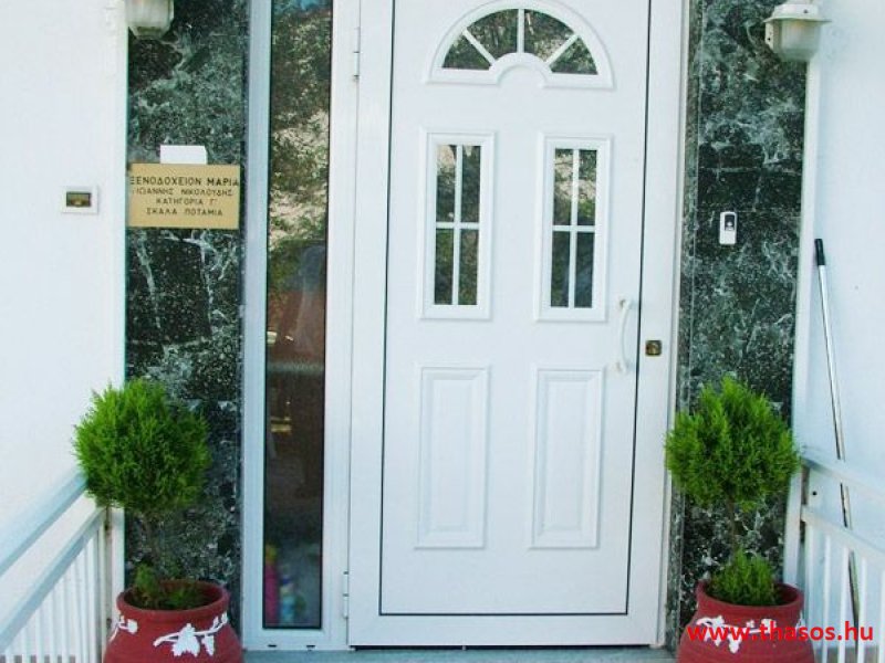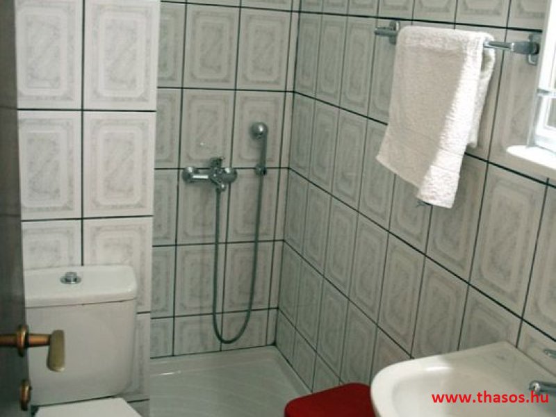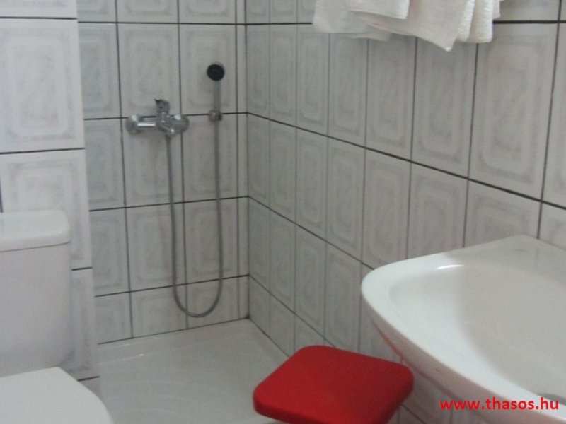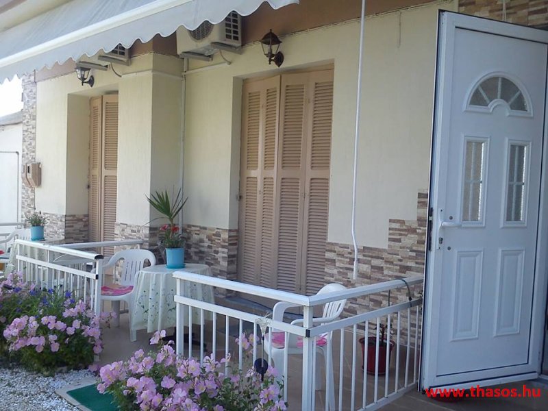 Leírás: Az épület oldalvást a tenger felé épült, közvetlen a parton. Az Alexander Stúdió központ felé eső oldalsó szomszéd épülete ez. Nyugodt környék. Bejárat csak a strand felőli földes bekötőútról. Ez az út gyér forgalmú, leginkább a gyalogos strandolókat jelenti. Az esti órákban kizárólagosan csak gyalogosan, a centrum tavernákhoz vezető sétányként használható. A partszakasz és a strand keskeny, közvetlen a víznél homokos, de az út felől sóderes, sekély vizű, napágy nélküli strandszakasszal. Az apartmanház magánparkolója az épület oldalánál saját, de nem zárt területen van.