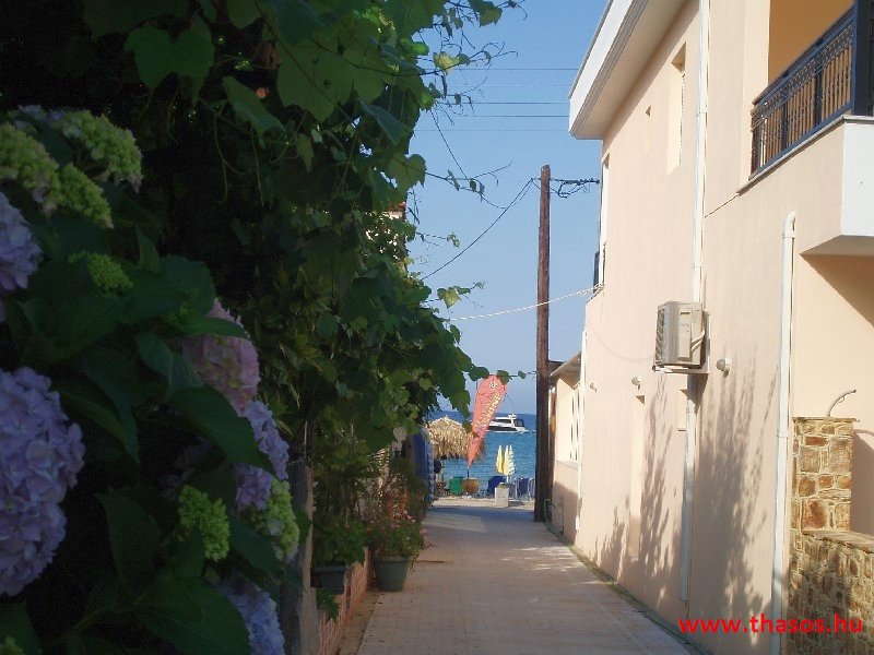 Az épület tenger felé eső 2 db emeleti apartmanja egymás szomszédságában teljes fronttal arccal a tenger felé épült, erkélyeivel csodálatos kilátással a közeli partszakaszra. Nyugodt környék. Autóval bejárat csak a stranddal párhuzamos aszfaltútról. A partra viszont gyalogosan is lesétálhatnak a szállás oldalán levõ gyalogútról, ami a Hermes Hotel elõtt vezet el.
