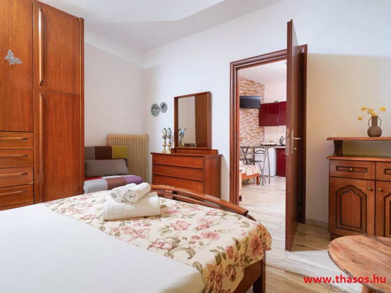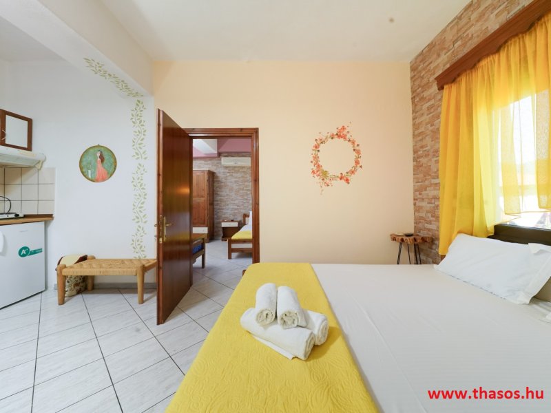 1 db 2+2+1 ágyas apartmanlakás erkélyekkel és csodálatos tengeri kilátással. A hálószobában nagyméretű franciaágy, a nappaliban kisebb méretű franciaágy, és egy kanapéágy. /THALIA /