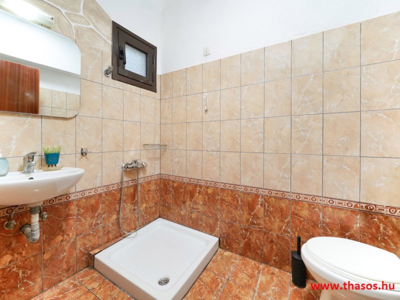 A/2. A stúdióba belépve ikerágy és a normál hálószobai berendezés van. Szükség esetén egy - egy kanapéágy elhelyezhető, bár a komfortosabb kényelem miatt, 2 személy részére ajánljuk. A konyharésze főzőfülke szerűen leválasztva az alvórésztől. A konyha normál méretű és berendezésű. A fürdőszoba zuhanytálcás tusfürdős. A lakáshoz a kertre és a tengerre néző nagy terasz tartozik.