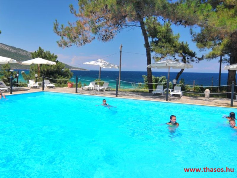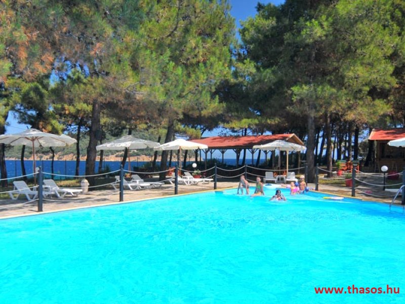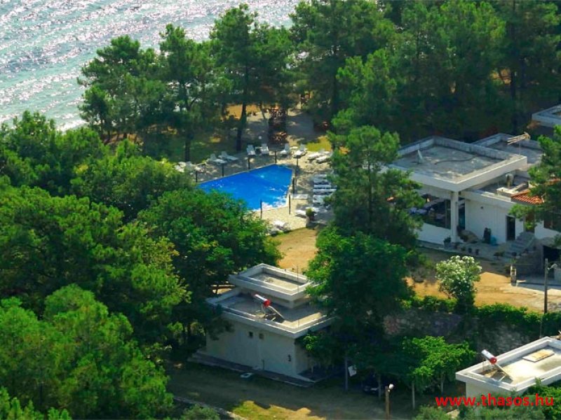 A Bungalo Lutro területe Thassos legzöldebb területén és a legszebb homokos strandnál épült. E gyönyörű természeti környezetben a külső szemektől láthatatlanul bújnak meg a kicsiny, egyszerű épületek, kiváló kombinációval, úgy, hogy a természeti adottságokat is tiszteletben tartsák az építmények. A területen levő létesítmények, mik mindenféle szolgáltatást nyújtanak, egymástól nagy távolságra vannak. Így a szállásokon való pihenés maximálisan biztosított. A tengerparti területe is leírhatatlan szépséggel rendelkezik. 5 méter széles és kb. 500 méter hosszúságú finom homokú sekély, melegvizű tengerparti szakasza mindentől háborítatlan. A teljes terület panorámája a Kinira lakatlan szigetére és a Potámia falu felől emelkedő magas hegyekre nyílik a sziget keleti oldalán. Ez a fekvés, és a fenyőerdős természet a benne lakó összes énekesmadarával, a hajnali csodás napfelkelte egy csodát nyújt minden ott nyaraló vendégének.
