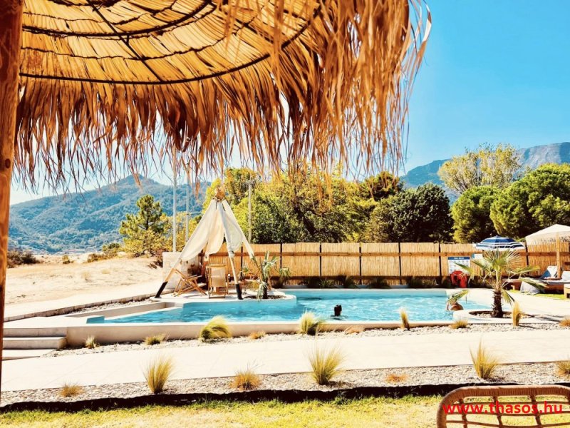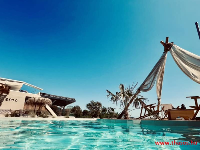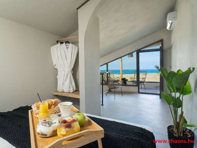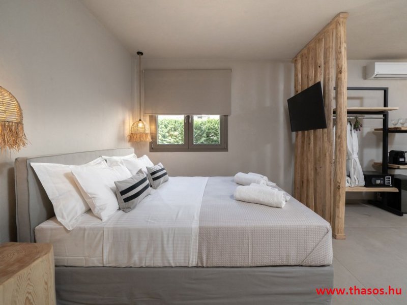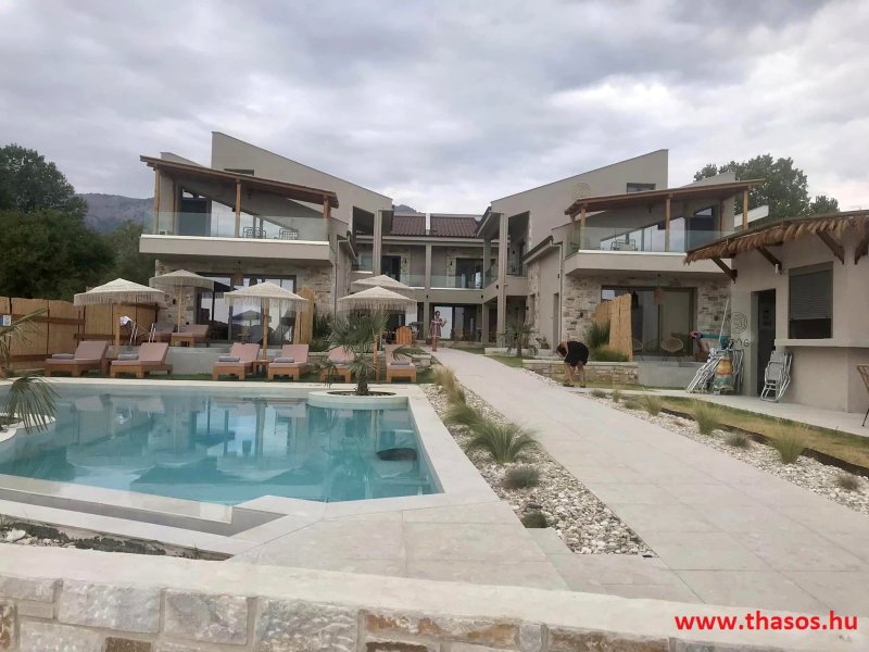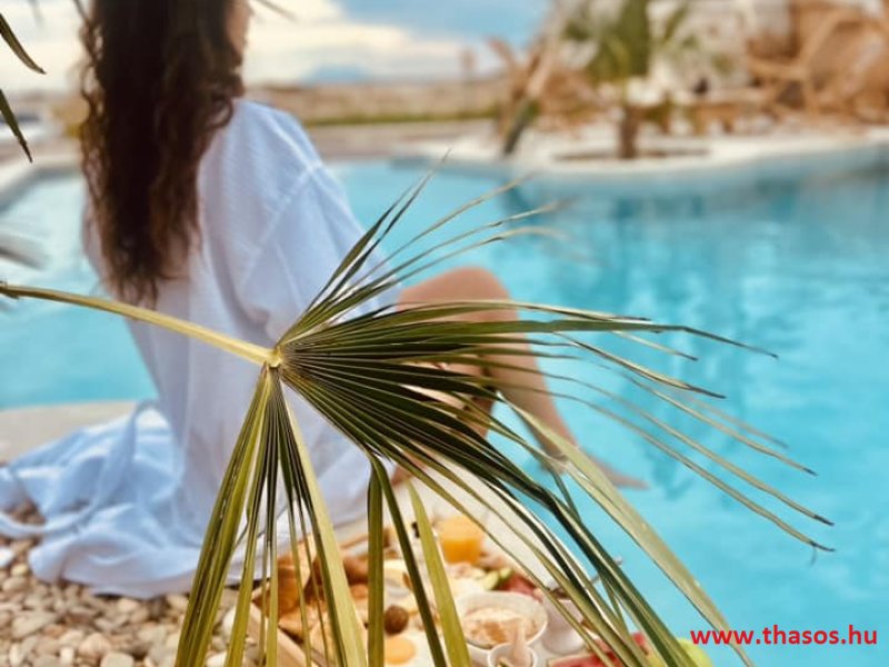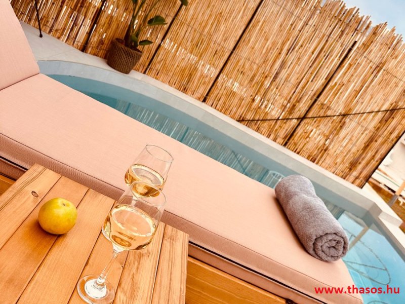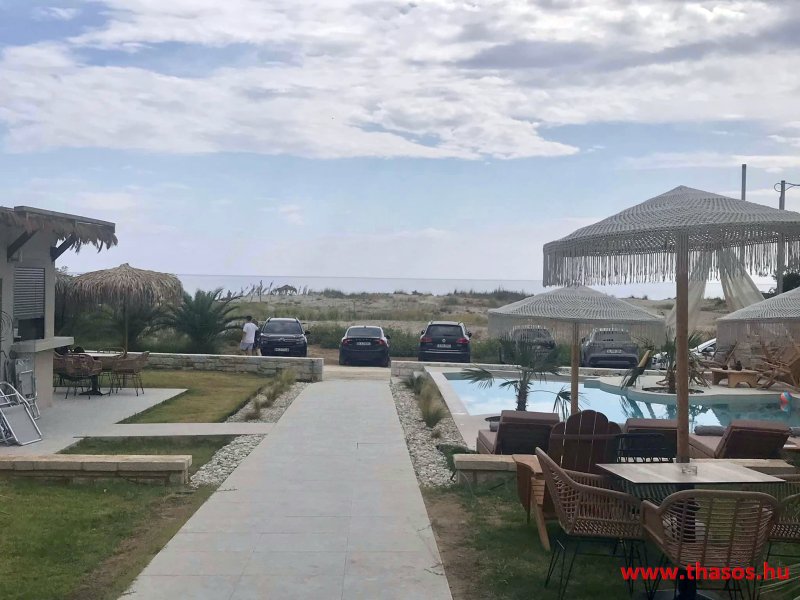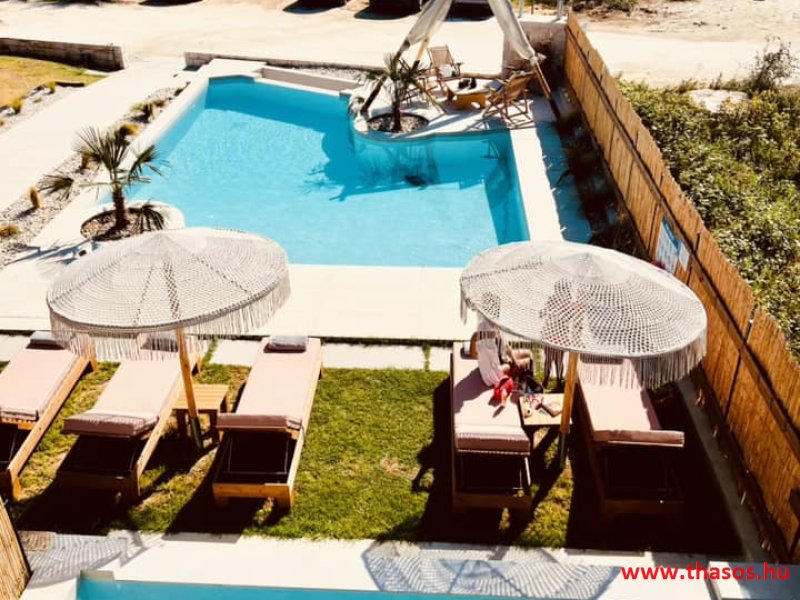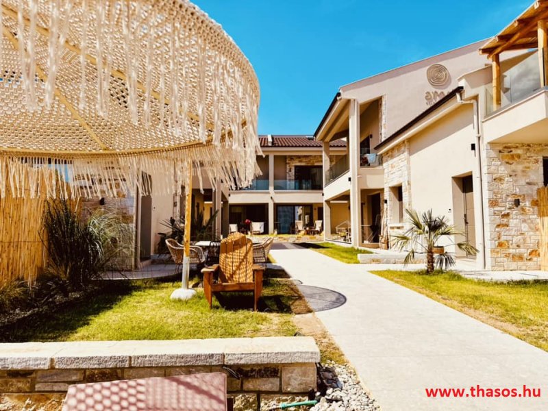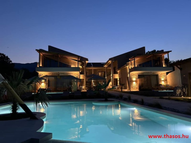 Az újonnan épült Arany Homok hotel mindössze néhány méterre áll a Golden Beach arany homokjától az öböl közepén. A nyers természeti szépséggel tökéletes összhangban épült Thassos szigetének Aranypart öble közepén, mely a Natura 2000 európai ökológiai természetvédelmi területén található. A luxus egy másfajta értelmezését javasoljuk, amelynek semmi köze a lenyűgöző elemekhez, csak a természet adta szépséghez, magas komforttal a tartózkodás első percétől az utolsó percig kínál élményeket. 10 stílusos lakosztály, mindegyik modern esztétikával, mediterrán napsütésben az Égei-tenger csodás látványával. Az épületrendszer a parti strandfövénybe épült bele. Természetes szépségét a kő és a fa elegáns kombinációja fokozza, békés és harmonikus légkört teremtve, amely tökéletesen beleolvad a környező tájba, mely egyik oldalon az Ypszarió fenyves hegyvonulata, másik oldalon a homokbuckás tenger. A medencéi, mint a tenger folytatása a lakásokhoz épültek hozzá. A lakásbelsők bútorzata és minden eleme mind az épület mellett folyó patak, a tenger és a hegy ölelését adja vissza tökéletes mediterrán hangulattal. 10 elegáns lakosztály földes hangulattal és bohém bájjal, amelyek készen állnak arra, hogy egyedi és felejthetetlen élményeket kínáljanak Önnek. Az Arany Homok hotel öt különböző kategóriájú lakosztállyal és egy egyedi esztétikai megjelenésű közös úszómedencével rendelkezik, amely modern kényelmi és szolgáltatási lehetőségek széles skáláját kínálja, lehetőséget adva az ügyfél igényeinek megfelelő választásra. Szolgáltatás: Hideaway -Lakosztályok kertre néző kilátással Éden lakosztályok tengerre néző kilátással Natura lakosztályok Natura lakosztályok tengerre néző kilátással Sunrise lakosztályok/tengerre néző - saját magán medencével Apartman ár: 4 fõre Időszaktól függően változó, Május 20-tól - Október közepéig: 150-550 Euró. Reggeli szolgáltatás 15 Euró/fő/nap/ extra költség. Kérem érdeklődjön. Képek a szállásról Hideaway -Lakosztályok kertre néző kilátással Éden lakosztályok tengerre néző kilátással Natura lakosztályok Natura lakosztályok tengerre néző kilátással Sunrise lakosztályok/tengerre néző - saját magán medencével Képek az öbölről