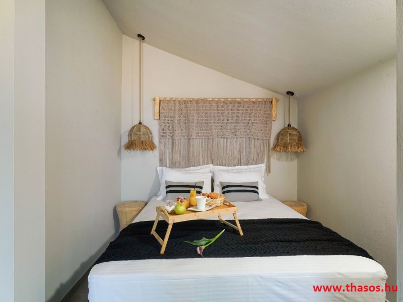 Egyedülálló, kétszintes lakosztályok a harmadik épület legfelső emeletén, 44 négyzetméter alapterülettel, mesés kilátással a tengerre. A táj természetes szépsége tökéletesen tükröződik a földszínekben és a bohó dekorációban. Minden lakosztályban van egy franciaágy az emeleten, a földszinten pedig egy nappali, , ahol két egyszemélyes ággyá alakítható kanapé van, így akár 4 fő befogadására alkalmas a lakosztály, valamint egy privát erkély, ahol leülhet, pihenhet, és kényeztetheti magát a káprázatos napfény, a tiszta kék ég és a kék tenger, a természet hangjai és a békés táj élvezetében.
