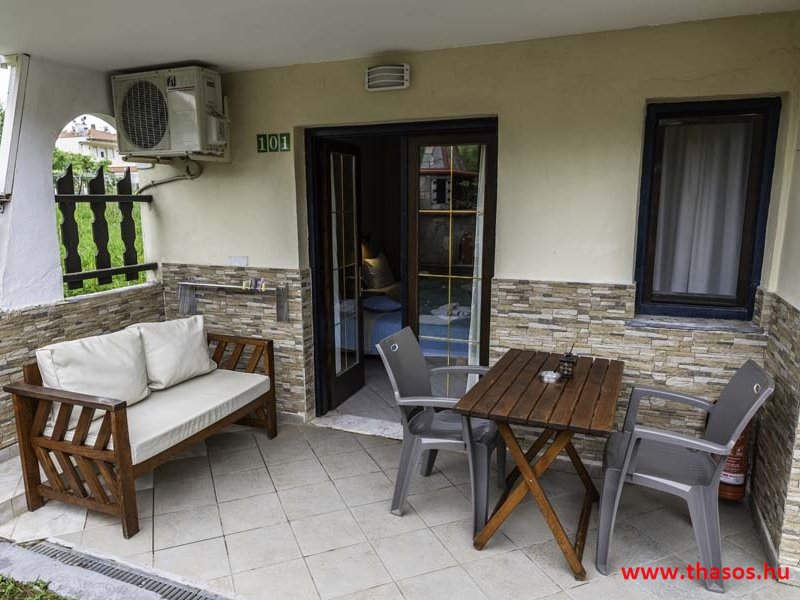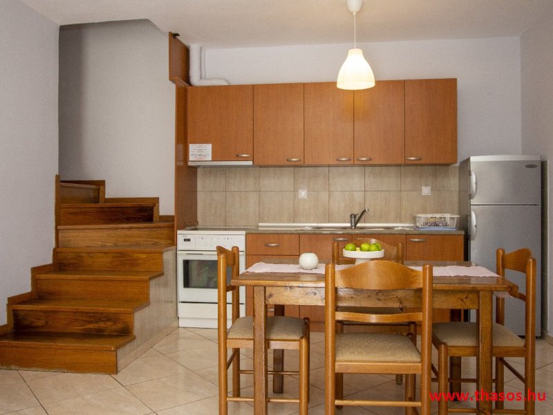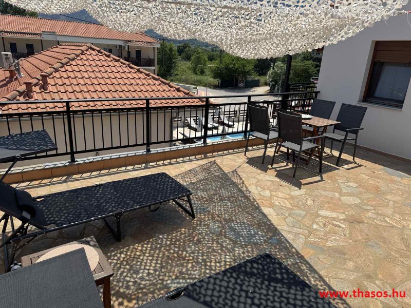 2026. évre új élet költözött ebbe a szálláskomplexumba. A gyönyörű szállás Skála Panagia camping part területe felett van. A szállás csupán néhány lépésre áll az Égei-tenger türkizkék vizétől és a híres Chrysi Ammoudia, azaz Aranypart strandtól. A közelben kristálytiszta vizű strandok, helyi taverna éttermek hagyományos ízekkel és festői ösvények találhatók, ahol sétálhat a tengerparton. A komplexum közepén egy lenyűgöző közös medence, amely ideális hűsítő csobbanásokhoz és pihenéshez a görög nap alatt. A medence speciális biztonsági intézkedésekkel van ellátva a gyermekek számára, hogy biztonságos és gondtalan élményt nyújtson a családok számára. Kényelmes napozóágyakkal és árnyékos területekkel van kialakítva, ideális környezetet teremtve a medencézés élvezetéhez. A lakások része a teljesen felszerelt konyha gyors ételek elkészítéséhez, valamint a hűtőszekrény. A lakások erkélyei tágasak, berendezettek, mint egy kis privát oázis. Ez a ház családi nyaralásra vagy párok részére ajánlott, kik természeti kalandokra vágynak. Teljesen felszerelt stúdióink és apartmanjaink ötvözik a modern kényelmet és az autentikus görög hangulatot. Csodálatos kilátást a tengerre és a zöld hegyekre. A ház közelében az ellátottság biztosított. Skála Panagia öböl közép-keleti részén mi található, mely a nyaraló vendégek ellátását szolgálja? Szupermarket, hentes, pizzériák, gyros tavernák, halas tavernák, kis kocsmák, élőzenés éjszakai parti taverna mind a szálláshoz közel. Élet és nyugalom harmonikusan. A szálláshoz tartozó partszakasz az öblünknek a kempingnél lévő lassan mélyülő, márványporos, hosszú bemenetellel, sekély, meleg vízzel rendelkező része. Lehetséges a napágy bérlés is, de lehetőség van saját törölközős csendesebb partszakaszt is választani. Ami miatt még igen kedvelt ez a partrész, az a három típusú vízisport lehetőség. Három vállalkozó bérel itt helyet: vízi sport, vízi járművek és kifejezetten kisgyermekesek részére vízi paradicsom ugráló is választható. A szálloda vendégeinek egyik legszebb élménye a különleges medencénkben való fürdőzés. A ház komplexuma rendelkezik kétágyas egy légterű stúdiókkal, háromágyas egy légterű luxus stúdióval, mazonett belső szintes apartmannal és a normál egy hálószobás apartmannal. Mindegyike kényelmes, magas színvonalú. Hangulatuk nyugodt, barátságos és kellemes. A vendégek maximális kényelme érdekében a lakások úgy lettek kialakítva, hogy a meghatározott számú személyt tudjanak befogadni, és nincs lehetőség pótágyak hozzáadására. Ez biztosítja az elegancia és a funkcionalitás ideális egyensúlyát, megőrizve a tágasság és a kényelem érzését. Egy légterű stúdió lakásai : Egyedülálló szállásélmény a fényűző és világos stúdióban, amely ideális azoknak a pároknak, akik eleganciát, kényelmet és nyugalmat keresnek. Modern kialakításával és kiváló minőségű felszereltségével ez a szálláshely ötvözi a luxust a hangulatos légkörrel, így tökéletes helyet teremtve a pihenésre és a feltöltődésre. A hálószobás apartmanok: Tágas, kényelmesen berendezett nappali - étkező, teljesen felszerelt konyhával rendelkeznek . A különálló hálószoba ideális környezetet biztosít a pihentető alváshoz, míg az elegáns belső kialakítás ötvözi a modern esztétikát a praktikummal. Tartózkodását további szolgáltatások teszik még kellemesebbé, mint például a műholdas TV a szórakozáshoz, a széf a személyes tárgyainak biztonságához és az ingyenes piperecikkek a modern fürdőszobában. A ház teljes korszerűsítése a mai friss színekkel, bútorokkal, anatómiai ágybetétekkel, stb. 2025 szezonzárás után történt, amiről szezonkezdet előtt fotógaléria frissítést teszünk. Addig is a régi képek állnak rendelkezésünkre. Superior stúdió Kétágyas stúdió Apartman Maisonette Executive stúdió Standard háromágyas szoba, földszinten Standard családi apartmanszoba, földszinten Basic háromágyas szoba, 1. emelet Basic családi apartmanszoba, 1. emelet Medence felőli oldal: Kert felőli oldal: A megadott ár tartalmazza az extra, helyben fizetendő turisztikai adót is. A mazonette és az apartman esetén az árak 4 fő/éjszaka/lakásra vonatkoznak. Azok lehetnek 5 fősek is. Térítési díj az extra főre 10 Euró/éjszaka/mazonette vagy apartman lakás. Egyéb lakások nem pótágyazhatók. Összesen 20 lakással rendelkezik a teljes házkomplexum. Közvetlen medencés lakások, mazonettek, apartman és a standard lakások. Egy lakás esetén: Érkezés és a lakás elfoglalása 14:00 órától. Távozás és a lakás átadása: 10:00 - 11:00 óra között. Képek a szállásról Superior stúdió Kétágyas stúdió Apartman