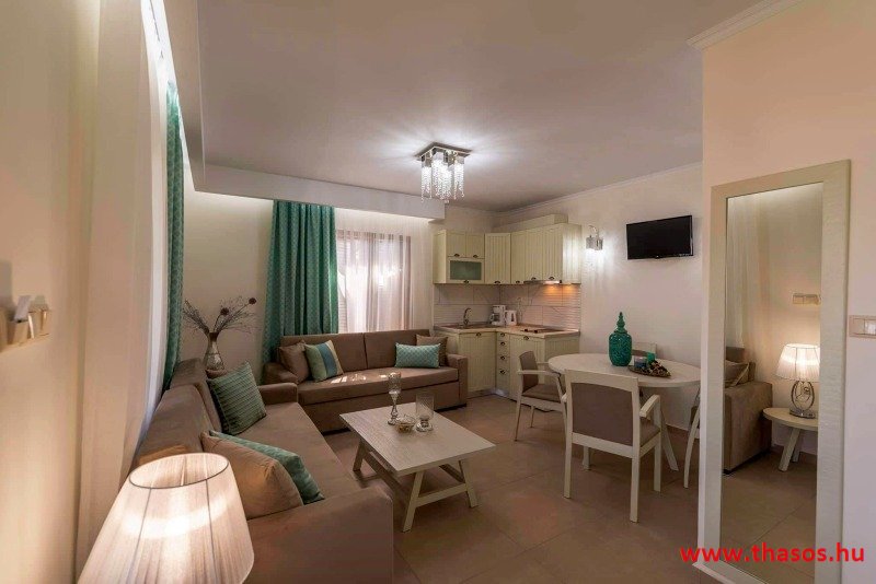 A mazonett apartman alsó részén is van terasz fantasztikus kilátással a hegyre a tengerre és az ófalura. Az alsó szint hálószobájában hálószoba berendezés és franciaágy.. A felső szinten szintén fantasztikus kilátású terasz. A lakásba menve nappali, konyhasarok étkezővel és kettő, felnőttre méretezett ágy. Légkoncicionáló berendezés, plazma Tv. A kettő szint közt csigalépcső.
