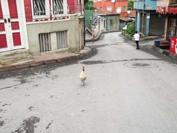 Itthon kinyomtattam a Szulejmán-dzsámi és a Pantokrátor-templom (ma Zeyrek-dzsámi) közötti utat a guglimaps-ról. Eléggé zegzugosnak tűnt. Az is volt. Ja és ráadásul igen hepehupás a város. Mentünk, lefelé, kanyargott az utca, öreg épületek szegélyezték, a sikátornyi keresztutcákban még öregebb épületek néztek le meg föl ránk. Sőt egy zsebkendőnyi udvarban még egy kis minaret is állt az épület tetején. Az élet itt sem áll meg, az iskolából kitóduló gyerekek eltrappoltak mellettünk vidáman szaladva… aztán egyszercsak ott volt egy kakas. A járdán, de megijedt, és kiszaladt az út közepére és ott rikácsolt…