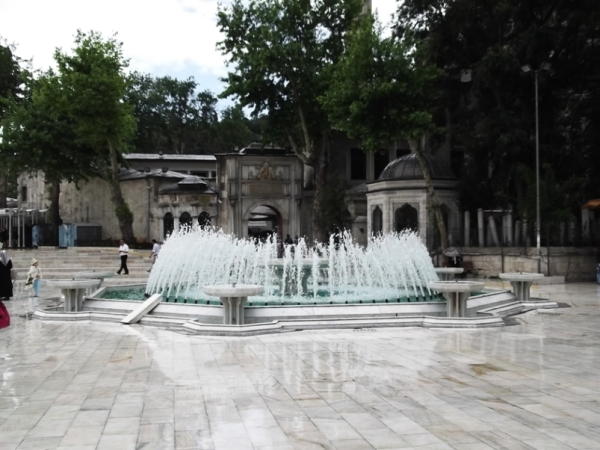 Szemben a tér végén a kút, amit Vilmos német császár küldött ajándékba – szép, de semmi történelmi jelentősége nincs. Azon túl emelkedik méltóságteljesen az Aja Sofia hatalmas, masszív tömbje, másfél évezred tanúja.