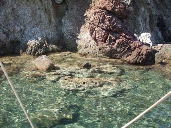 Utunkat folytatva, fürdőprogramot javasolok, és ennek említése senkinél nem vált ki tiltakozást. Még otthon feltérképeztem a közeli partokat, így elsőnek a legközelebbit vesszük célba, ami csak néhány kilométerre van. Percek alatt meg is érkezünk Fournoi falucska tengerpartjára. A part szép, hullámzás szinte alig, de beigazolódik a sejtésem, a terep köves. Előzetesen képeket nem leltem a helyről, így már eleve gyanakodtam. Erre az esetre készültem B tervvel, de előbb még erről néhány szó. Elég hosszú, nyugis partszakasz, garantáltan békés. A hozzánk közeli végében apró dombocska, amin jó görög szokás szerint kis templom, néhány pad, és néhány árnyat adó fa teszi teljessé az idillt. Lenézve látjuk, hogy a tengerparti rész tovább folytatódik, végét egy nagyobbacska domb zárja le. Ez egy különleges hely, belsejében barlang rejtőzik, nem is akármilyen, ősember-barlang. Franchthi barlang a hivatalos neve, és valóban őskori maradványokat találtak benne. Az odajutás meglehetősen kalandos, mert csak egy keskeny ösvényen lehet megközelíteni, végig a domboldalt követve. A képeken a belseje is elég sziklásnak látszik, így jelen esetben kísérletet sem teszünk a becserkészésére.