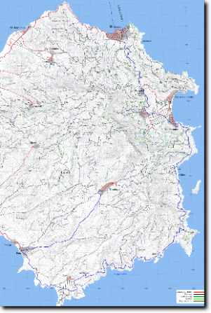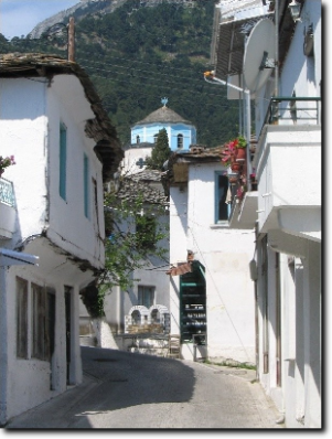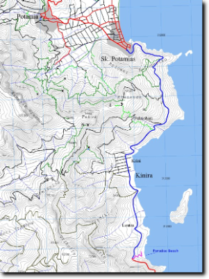Reggeli után lesétáltunk a helyi strandra, és itt mártóztunk meg a tengerben. Strandolás után megpróbáltunk sziesztázni, és 4 óra körül ismét elindultunk a szokásos úton, de most még tovább autóztunk. A cél a mariesi vízesés volt. Az út Kinira-n, Aliki-n, Astris-en, Potos-on, Limenaria-n keresztül vezetett Marinesig (kékkel jelölve). Marinesen áthaladva az utat már jó minõségű földúton folytattuk tovább. Az út szélén méhkaptárok jelezték, hogy mivel is foglalkoznak a helyi lakosok. Egy helyi méhész még tüzet is kért, hogy begyújthassa a füstölõjét (gondolom otthonmaradt, vagy kifogyott a sajátja). Igaz, hogy nem dohányzunk, de a kocsiban általában szokott lenni öngyújtó, amit oda adtunk neki "ajándékba", remélem ezzel szereztünk nála egy pár jó pontot a magyaroknak. :)