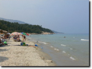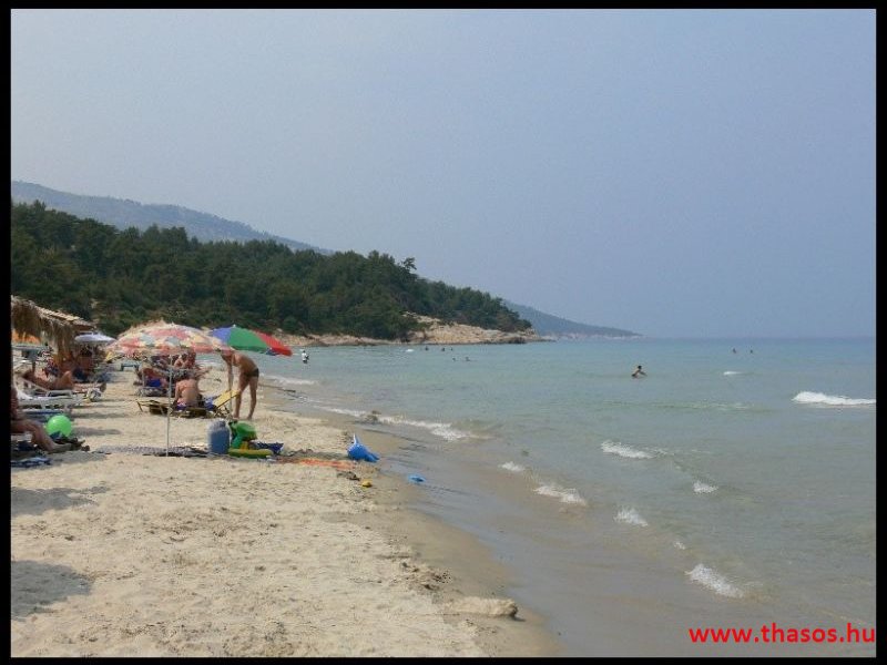 A partról visszatérve Panaggiából mentünk le Chrisi Amoudia tengerpartjára. Ott fürdõztünk még egy keveset és indultunk haza. A strand a szigeten tapasztaltakhoz viszonyítva zsúfolt, de nagyon lassan mélyülõ finom homokos.
