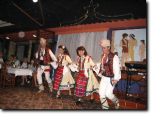 Az esti program autókázással indul. 4 autóval indultunk el Theologos irányába, de előtte megálltunk az Archaggelos kolostornál, ahol Ágnes mesélt a szigetről, a kolostor történetéről, majd bementünk és megnéztük, hogy miről is beszélt. Ezekután indultunk most már a végcélhoz. A műsoros est Theologosban, az Augoustos Tavernában került megrendezésre. A vacsora svédasztalos volt, a felnőttek bort, a gyerekek üdítőt kaptak az árban. A vacsora alatt élőzene, utána táncos műsor volt. Mivel Ágnest, illetve férjét jól ismerték a helyen kis csoportunk a legjobb 3 asztalt kapta, mely pont a "színpad" előtt volt. Így a gyerekek is mindent láttak és élvezték az előadást. Különböző táncokat adtak elő a táncosok, közbe-közbe pedig a közönséget is bevonták. Engem csak azért nem láthattok táncolni, mert a lányom elfelejtette a kamerán megnyomni a felvevő gombot. Pedig végig úgy csinált, minth.....