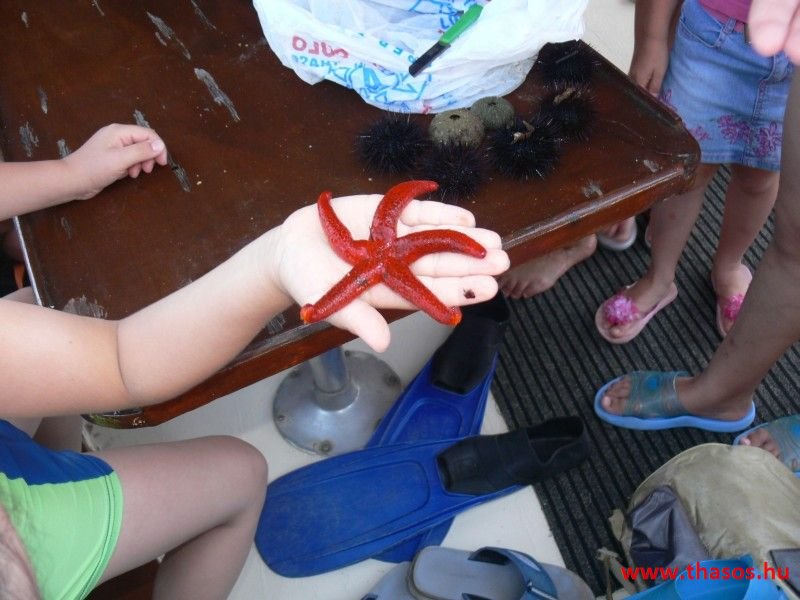 Délelőtt elmentünk autóval is a "márványpartra". Sajnos sok volt a méh, és az ismerős egyik fiát meg is csípték, ezért ismét volt egy kis szóváltás, ők elviharzottak, mi pedig maradtunk még. Találtunk tengericsillagot, amit megmutattunk a parton lévőknek, majd visszavittem a mélybe.