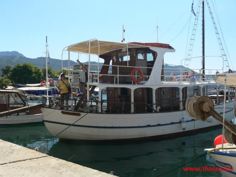 Reggel indultunk, útközben felvettük Ágit és együtt mentünk Limenasba, a kikötőbe. Ott felszálltunk a hajóra, és hamarosan indultunk is. A hajó kelet felé indult. Hajóztunk egy keveset és hamarosan megálltunk horgászni. Mindenki kapott egy műanyagra feltekert vastag damilon lógó horgot, melyen ott lógott a csali. Azt le kellett engedni koppanásig, és egy kicsit mozgatni kellett fel-le. De mivel senkinek nem sikerült halat fogni, továbbálltunk és egy újabb helyen próbálkoztunk. Ott már egy 10 cm-es halat sikerült fognom, de rajtam kívül többet senkinek nem sikerült. Horgászat után lehajóztunk egészen a Paradiso Bach-ig. Az út során többször be-behajóztunk egy két kisebb szép öbölbe. Az egyik öbölben megálltunk és lehetett úszni, búvárkodni , ugrálni. Mi mindannyian bementünk a saját búvárszemüvegekkel és az Ágitól kapott uszonyokkal. Szép víz alatti helyeket láttunk. Ági hozott fel mutatóba tengeri csillagot, tengeri sünt és sünházat. Sünt és sünházat már többet szedtünk előtte mi is, de a csillag az újdonság volt. Paradisonál volt a következő hosszabb megálló, ahol ismét búvárkodtunk. Közben készült az ebéd. Mikor elindultunk visszafelé, elfogyasztottuk a finom ebédet. Az úton végig csodáltuk a tájat. Nem győztük kattintgatni a fényképeket. A következő és az egyben utolsó megállás a "márványparton" volt. Itt nekünk megint búvárkodás volt a program. A kevésbé jól úszókat csónakkal vitték ki a partra. A visszafele úton fiam elpilledt, mi pedig beszélgettünk Ágival.