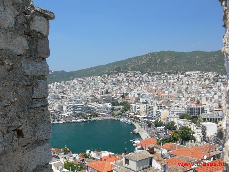 Sikerült elég korán elindulni, és elérni Prinos-ba, hogy átmenjünk Kavalába. A szárnyashajó gyors és kényelmes közlekedési eszköz a sziget és a szárazföld között, bár egy kicsit drágább, mint a komp. Egyszer ezt is ki kell próbálni. Prinos és Kavala között a felnőtt jegy 6,5 Euró, a gyerek pedig 3,3 Euró. Kavalában sétáltunk egy nagyot. Bementünk a piacra és a halpiacra körülnézni, majd felmentünk a várba. A várba vezető szűk és meredek utcák hangulatosak ugyan, de a melegben eléggé fárasztóak. A várba belépővel lehet bemenni, melynek ára: felnőtt 1,5 Euró, gyerek 1 Euró. Túl sok látnivaló nincs bent, de a kilátás pazar a várfalakról.