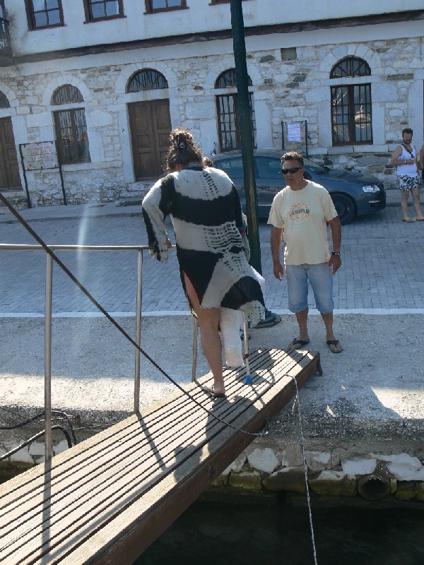 Keramotiba érkezve elég nagy sor volt, de simán felfértünk az első hajóra. 10.45-kor (kint 11:45) már indult is a komp, és 1 órával a kompindulás után már meg is álltunk a Jota apartman elött. Üdvözöltük Jotát, a gyerekeit, Ági testvérét, és az ott lakókat, majd gyorsan kipakoltuk a kocsit.