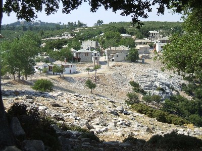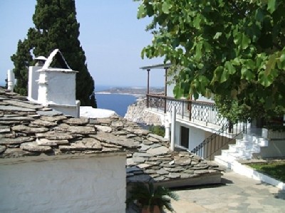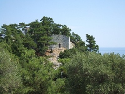 Az Ypsario előtt egy forrásnál frissíthettük fel magunkat és megettük az ebédre hozott szendvicseket. Utunkat folytatva hamarosan elértük Thassos sziget legmagasabb pontját. A hegycsúcsig éppen nem lehet felmenni autóval, kizárólag gyalogszerrel közelíthető meg a legmagasabb hegytető. Szerintem mindegyikőnket lenyűgözött a látvány, amelyik elénk tárult a magasból.Az egész öblöt beláttuk Skala Potamiától Skala Panagiáig. Gyönyörű, szavakkal le nem írható élmény. Valaki fennhagyott egy távcsövet, azzal még az apartmanunkat is megkereshettük a távolban. Az időjárás is kezdett jobbra fordulni, kikandikált a nap a felhők mögül. Gyönyörködtünk, fényképeztünk. Egyszer csak Ági kiabálására lettünk figyelmesek, hogy menjünk már, mert még sok látnivaló vár ránk. Vonakodva bár, de elindultunk lefelé. Az Ypsariótól egy kősivatagon keresztül jutottunk el a félig halott hegyi faluba Kastro-ba. Valaki egyszer azt írta egy másik faluról, hogy ott állni látszik az idő. Nekem itt támadt hasonló érzésem.