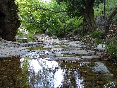 A kolostorlátogatás után utunkat tovább folytattuk délre, Potost elhagyva hamarosan elértük Limenariát. A városon túljutva próbáltunk jó strandot találni. Lementünk a parti útra és egy alkalmas helyen megálltunk. Én egy kicsit csalódott voltam, mert a part nagy kavicsokkal borított volt és a vízben is kavicsok voltak. Maga a tenger egyébként kristálytiszta volt. Itt láttunk medúzát, igaz már kimúlt szegény. Fürdöttünk egy kicsit, majd bementünk Limenariába ebédelni. A városban vettem egy istenien kinéző nagy üveges cseresznyebefőttet (5,5 eu). Visszaindultunk Potos irányába, valami jobb strand reményében. Pefkarinál lekanyarodtunk a Metallion Beach-re. Elég húzós volt a lefelé vezető út robogóval, visszafelé ki is fogott rajtam. A Metallion Beach egy elég különleges látványt nyújtó hely. A part kissé köves, de mégis inkább homokos. A vízbe egy jókora darab, kb.5-6 méter széles kő vagy szikla nyúlik be. Ennek a felülete elég csúszós a moszattól és a sziklán (kövön) növő nagyobb növények között tengeri sünök is megbújnak. Vigyázat a fürdőzőknek!!!!
