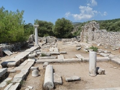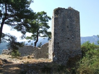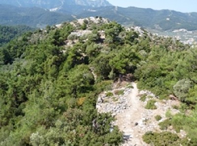 A színháztól felfelé egy ösvényen továbbhaladva jutottunk el az Akropoliszig. A monumentális építménynek sajnos csak néhány támfala és a romjai maradtak meg, de így is jól látszottak hatalmas méretei.