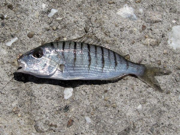 Miután éppen elég csíkos sügért fogtam, észrevettem, hogy a közvetlenül a part mellett tengeri gébek pihennek a kövek között. A csontit eléjük lógatva egy pillanat alatt elnyelték a felkínált csalétket. Ezeket is alaposan megtizedeltem, így ittlétem alatt ez lett a harmadik halfaj, amely áldozatul esett nekem. Aznap kíméletes kedvemben voltam, így az összes kifogott halnak visszaadtam a szabadságát. Sajnos, az utolsó horgászatom alkalmával sem tudtam tovább maradni egy óránál, mivel a perzselő napon alaposan leégett az alkarom és a lábam. Miután otthon levettem a szandáljaimat, úgy nézett ki a két lábfejem, mint két vörös-fehér csíkos bohóchal.