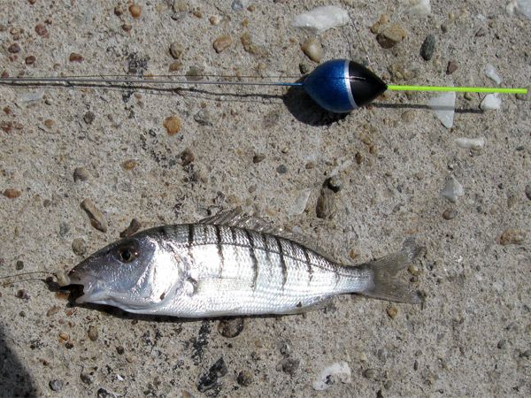 Tehát megérkezésem napján, pár órás pihenőt követően fütyörészve bandukoltam le a tengerpartra, ahol kiszemeltem magamnak egy helyes kis kikötőt. Odaérkezve összeállítottam a botomat és már repült is a szerelék a sós habokba. Rögtön elkezdték piszkálni a csalit halak és láss csodát, eltűnt az úszó. Bevágtam és már a parton is ficánkolt az első tengeri halam, egy kis csíkos sügér, ami sajnos felfelé kerekítve is csupán 3 centi hosszú volt. Sebaj, de legalább megvan az első tengeri! Ám, az események nem várt fordulatot vettek. A kikötőben a görög halászok elég csúnyán összevesztek. Bár nem értem a görög nyelvet, de olyan gesztusokat tettek, amik magyarul is hasonlóan értelmezhetőek... :) Valaki elfoglalta a másik csónakhelyét, ezen robbant ki a viszály. Úgy döntöttem, hogy nem várom meg, míg kirobban a második peloponnészoszi háború, így átmentem a móló tenger felőli oldalára, hátha itt nagyobb sikerben lesz részem.