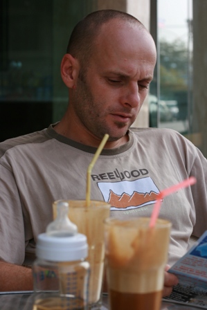 Rövidke pihenőt terveztünk, bár a görögöknél ennek nincs jelentősége, sem a rövidnek, sem úgy egyáltalán az időnek, a lényeg hogy pihenten indultunk útnak az esti sétához. Megint cukrászdára voksolt a csapat, ezúttal Milán sem tűrte már a babakocsis tartózkodást, mindenképp az asztalnál volt a helye, és rendkívüli módon élvezte. Ezúttal is finomságokat választottunk (mikor nem? :D) és az elmaradhatatlan frappét. Úgy látszik ez a nyaralás ránk egyébként nem jellemző módon szinte csak arról szól, hogy minél rövidebb idő alatt minél több napsütést és tengerillatot szívjunk magunkba, és minél több finom falat csússzon le a pocakunkba. Ez most nem egy aktív pihenés. :D