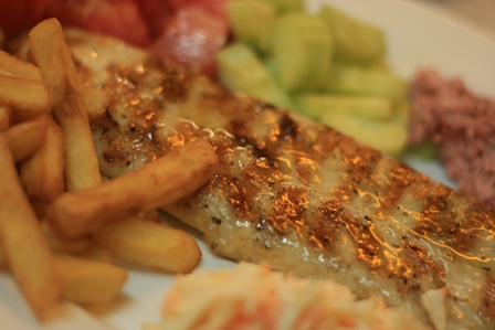 Gondolkoztunk hogy hol vacsorázzunk, volt egy erőszakos pincér srác aki minden alkalommal már pofátlan módon próbált beinvitálni minket naponta akár négyszer, oda semmiképp nem akartunk menni, gondoltuk bemegyünk a Mouses-es felszolgáló új helyére, de ő meg nem dolgozott éppen, így visszasétálva, mivel az eső lába megint lógott, inkább az erőszakospincér melletti tavernába ültünk be... csakazértis. :) A. apróhalat evett, gavrost, én pedig a kardhallal kötöttem közelebbi ismeretséget, életemben először, többek ajánlására. ISTENI FINOM VOLT!