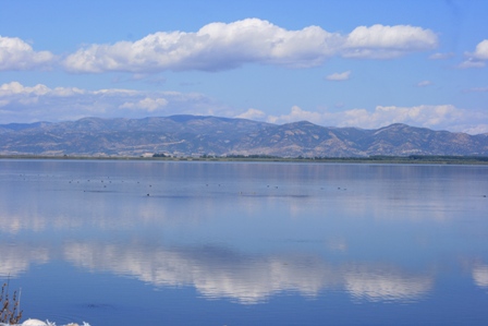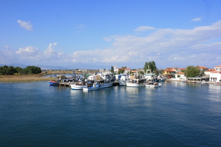Xanthi egyébként elvileg a dohánytermesztés illetve -kereskedelem miatt virágzó város és közigazgatási központ, de minket valahogy egyáltalán nem ragadott meg. Tulajdonképpen csak áthajtottunk rajta. Szeretem a görög városokat is, szerintem a szaloniki, athéni, patrasi kavalkádnak, forgalmi dugónak, összevisszaságnak is megvan a varázsa, Xanthinak - számomra - nem volt. Tovább hajtva a Via Egnatia nyomán végül elérkeztünk Porto Lagos és Fanari környékére, ami a mai kirándulásunk fő látványossága volt. Halastó, sőt tórendszer-szerű látkép az úttól balra, háttérben a Rodopi-hegységgel, és szinte a vízen úszó, mólókon át megközelíthető templomegyüttes jobbra... mi pedig mintha egy hosszú töltésen haladtunk volna. Volt olyan internetes oldal, ahol azt írták, nem is tavak vannak ott tulajdonképpen, hanem sólepárló, bár láttunk mi már olyat, és ez nem olyan volt. A vizet nem kóstoltuk meg, de akár ez, akár az, mindenképpen felejthetetlen látvány volt.