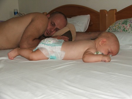 Milán végül fél7kor kelt nézelődve, aztán mosolyogva. Féltem, hogy mit fog szólni ahhoz, hogy nem otthon van, de végül nem vette zokon, az 1 órával korábbi ébredést betudtuk annak, hogy máris átállt görög időszámításra. Ajánlom is neki, hogy ez máskor is így legyen. :D A-val meg... hihetetlen, hogy mennyire egyformán működünk. Indulás előtti nap arra gondoltam, hogy mi lenne, ha mégsem indulnánk útnak, mert mi van, ha mégiscsak sok lesz Milánnak, de végül nem mertem szólni.. mint kiderült, neki is épp ez járt a fejében, de ő sem szólt róla, hogy ne vegye el a kedvem.