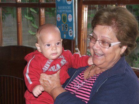 Visszasétálva próbáltunk úgy időzíteni, hogy lefürdejtük Milánt, gondolva arra hogy a vacsi közben milyen jót alszik majd. A terv egészen odáig be is vált, hogy korábban volt a fürdetés. Amint meglátott minket a vendégsereg, azonnal kikapták a kezemből a gyerkőcöt a társaság hölgy tagjai, kortól függetlenül egyébként, tehát ezt úgy értsd hogy 10-70 éves korig mindenki megdögönyözte, puszilgatta, csikizte. Na persze a lurkó meg élvzete a helyzetet, szemmel láthatólag bejött neki a sok rajongó. :D Mikor enni kezdtünk, lefektettük a babakocsiba, de 5 percenként rátalált valaki, majd mikor nem, akkor sem aludt, csak nézelődött.