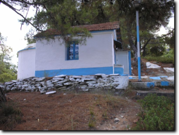 Limenas nyüzsgő város, a szokásos tömeggel. Felmásztam a színházhoz - nem láttam belőle semmit, mert le van zárva, úgy láttam, előadásokat tartanak benne -, aztán fel az Akropoliszhoz. Kötelező műsorszám. Igazi hegyi ösvény vezet fel oda, és az Akropolisz alatt meglepi a felfelé fújtató turistát egy kék-fehér kápolna.