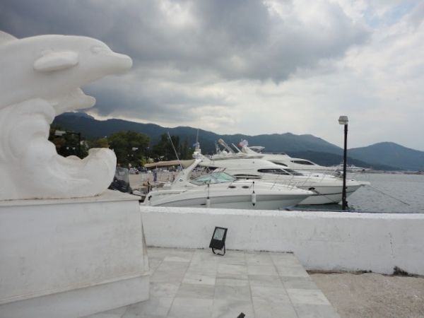 A kikötőnél beültünk egy étterembe, hatalmas sátorponyva a kinti rész teteje (nem nagyon figyeltem a nevét, de most rákerestem, talán a Thassitiko volt az). Megint grill tálat ettünk, nagyon finom volt, amíg kihozták az ételt, addig én a kikötőben fényképezgettem. Evés közben eléggé meggyűlt a bajunk a méhecskékkel, nagyon akartak enni az ebédünkből.