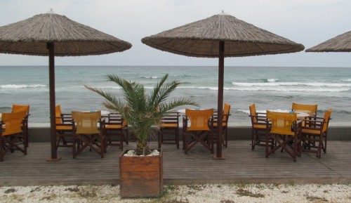 Ezzel ellentétben az öböl két szélén minden csillog-villog, bazárok sora tele mindennel, ami nem kell és vendéglő vendéglő után. Egyesek tömve, nem kapsz egy helyet sem, mások kongnak az ürességtől. Mindenhonnan más-más zene szól. Játékautomaták zajonganak és mellettük piciny kápolna, ahová ájtatosan be-betérnek a görögök.