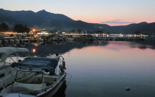 Kisétálunk a kicsiny halászkikötő mólójára. A távolban gyönyörűen látszanak a fények és halkan, kellemesen zenél egy görög csapat. Jóformán mindenki csak suttogva beszél. Némasággal adózunk a természet nagyszerűsége előtt.